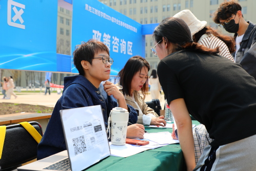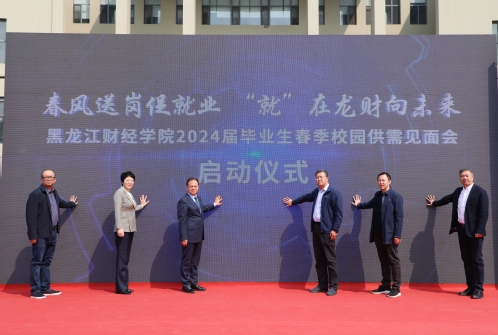 为做好春季我校2024届毕业生就业工作,搭建广阔的校企供需双选平台,促进毕业生留省就业创业工作取得新突破,4月22日,由黑龙江省教育厅主办、黑龙江省大学生就业创业指导中心、哈尔滨市人力资源服务中心、哈尔滨新区人才工作领导小组办公室、哈尔滨新区人力资源协会和黑龙江财经学院承办,黑龙江省民办高校就业工作协会体协办的“春风送岗促就业 就在龙财向未来”2024届毕业生校园供需见面会在我校星晖广场成功举办。省教育厅高校学生处处长刘志达、哈尔滨市人社局人力资源服务中心人才信息处处长杨文东、省教育厅高校学生处一级调研员崔志伟、黑龙江省大学生就业创业指导中心副主任刘鸿宇、松北区人力资源和社会保障服务中心副主任丁宁出席活动,校长于长福致辞,党委书记王敏、副校长李宪平及民办高校就业协作体成员单位代表、企业代表参加活动。