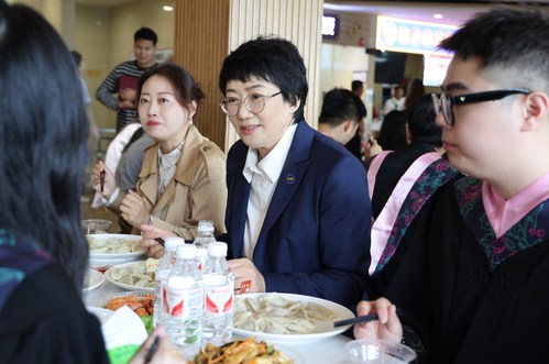 党委书记王敏代表学校致辞,她指出,饺子宴是学校精心准备送给2024届全体毕业生的一份礼物,饺子是中华民族传统美食,每一个饺子里,都饱含着全校师生对同学们的真切祝福与殷切期盼。同学们即将背起行囊,或奔赴工作岗位,或返回家乡,全国各地都将有着同学们跨上征途的身影。希望同学们在离开学校的日子里,不忘定格在龙财校园的四年美好时光,不忘肩负回馈社会的使命,带着龙财人满满的祝福和期望,勇往直前,创造属于自己的美好未来。“此去鹏程千万里,龙财永远牵挂你。”千言万语留在他日母校相聚,今天我们要把离别的饺子吃出滋味、吃出感觉、吃出龙财人的同心同意。