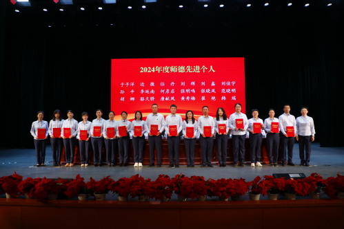 于长福代表学校党政领导班子向全体教职员工致以节日的问候和崇高的敬意,向受表彰的优秀教职员工表示衷心的祝贺。他指出,过去的一年,学校在风雨中稳健前行,在挑战中铸就辉煌。在评估整改的关键时期,全体教职员工齐心协力,真抓实干,实现了学校的各项工作再上新台阶、再提新水平。学校的每一个成就都凝聚着全体教职工的智慧,每一次跨越都饱含着每一位老师的汗水。希望全体教职工在今后的工作中继续努力,以一以贯之、开拓进取的姿态激发新作为,实现个人发展与学校发展的协同前行。他向全体教职工提出三点要求。一要修大德,始终牢记“立德树人”的根本任务。广大教师要坚持热爱教育、献身教育的道德追求,保持关爱学生、诲人不倦的道德情感,遵循关心集体、团结协作的道德准则,自觉在政治思想、道德品质、学识教风上率先垂范、言传身教,努力成为学生道德的引导者、思想的启迪者和心灵的开拓者;二要怀大爱,始终铭记“人民教师”的光荣使命。广大教师要加强对学生的人文关怀和心理疏导,学会尊重、理解、体谅学生,对学生耐心指导、热心服务、细心帮助。积极回应学生诉求,倾听学生心声,真正做好学生的引路人和知心朋友;三要做大师,始终坚守“学无止境”的终身追求。广大教师要在教学实践中不断学习,更新教学理念,提高教育教学能力,成为一名学习型教师。不断树立严谨治学的精神、改革创新的意识,努力提升教育教学质量,更好地激发学生的学习兴趣、实践能力和创造活力。