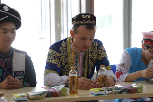 会场屏幕上的鲜明标语,桌上美味的月饼和新鲜的水果,靓丽的民族服饰,使整个会场处处洋溢着喜悦祥和的节日氛围。“虽不能与远在千里之外的家人相聚,但学校精心选购的月饼和水果带来了满满的仪式感,暖暖的贴心关爱和浓浓的文化氛围有效缓解了我们的思乡之情。”同学们敞开心扉,与参会老师一起谈生活、说感悟、提建议,会议现场欢声笑语、其乐融融。