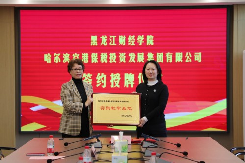 12月26日,我校与哈尔滨空港保税投资发展集团有限公司、哈尔滨阿克托斯经济贸易有限公司在尚德楼第二会议室举行校企合作签约暨授牌仪式。
