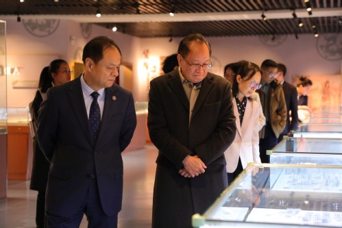 会前,陈晓阳、王义宁一行参观了我校文化创意产业学院、ICT工程产业学院、跨境电商产业学院、新金融智慧学习工场、新商科智慧学习工场、校史馆、红色财经之路博物馆、体育馆等设施和场所。