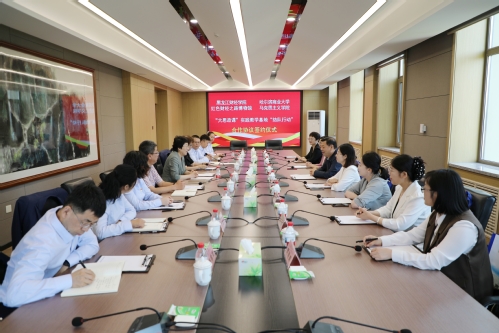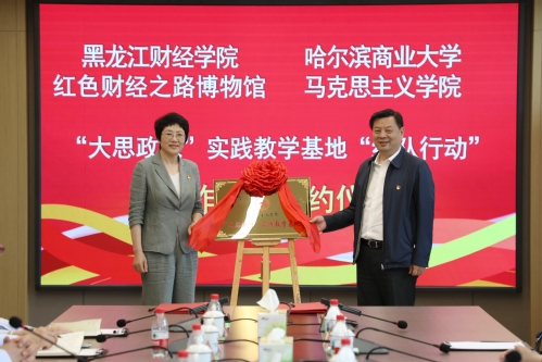 田成义介绍了哈尔滨商业大学“大思政课”建设情况,特别是依托学校红色文化资源和学科优势,打造以“商业文化”“红色基因”“法治教育”“心理健康”“诚信品格”为核心的五大思政实践教育特色做法。他表示,学校思政课建设是学生思想政治教育的重要组成部分,对于培养德智体美全面发展的社会主义事业建设者和接班人具有重要意义。哈尔滨商业大学愿以此次签约为契机,与黑龙江财经学院实现资源共享,联合开发红色财经、商贸文化等特色思政课程,打造沉浸式教学场景;实现人才共育,组织师生参与陈列场馆的志愿讲解、研学策划,培养新时代红色文化的传播者;实现品牌共创,联合举办红色财经实践教学,场馆里的思政课活动,讲好中国故事,共同推动思政育人的事业发展。