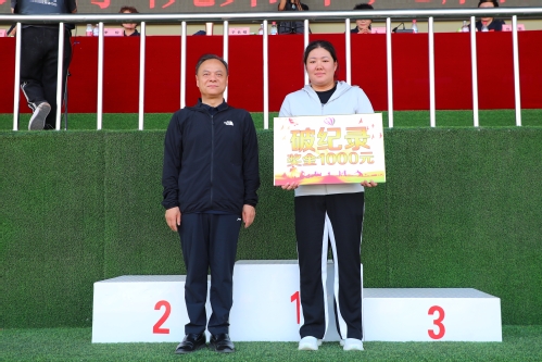 校长于长福为学生团体总分前三名及破纪录参赛者颁奖