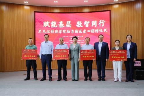 徐涛指出,区域经济社会的发展,和谐社会的构建,基层社会的治理,离不开爱心公益事业。黑龙江财经学院此次捐赠的200余台办公电脑及投影仪,不仅能帮助基层提升政务效率,更能通过信息化手段,推动党建工作与乡村振兴深度融合,为新区基层治理送来了“及时雨”、注入了“新动能”。他表示,黑龙江财经学院会计、金融、计算机等优势学科,与新区“4+4”现代产业体系高度契合。希望学校继续发挥学科优势,与新区在产教融合、人才培养、社会服务等领域开展更深层次合作,共同书写“党建引领、校地同心、振兴发展”的崭新篇章。