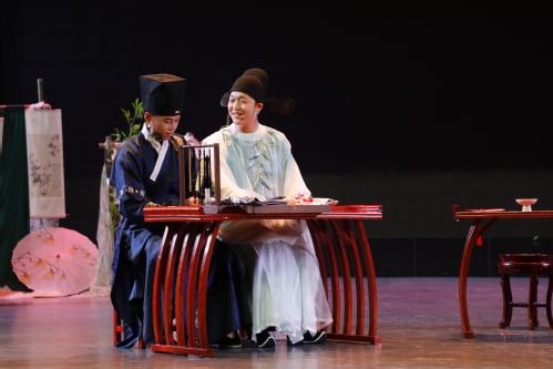 话剧以1937年扬州为背景,正值日军逼近、时局动荡之际。在一间临时教室里,魏忘熙偶然发现苏锦书案头放着一本《桃花扇》。苏锦书随即讲述了300年前(明末清初)李香君与侯方域的爱情故事——两人在乱世中坚守忠贞,以一柄桃花扇见证家国兴衰与个人气节。话剧通过古今交织的叙事手法,学生们展现了面对国难时的坚定信念与民族气节。剧中既有对爱情的歌颂,更有对家国情怀的深情表达,传递出“国家兴亡,匹夫有责”的时代精神。